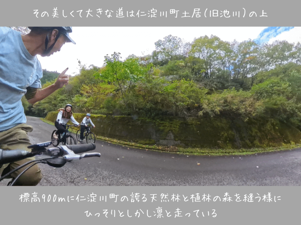 移住して後、この道の噂は聞いていた。 しかしこの奇跡の様な道を見た時、また、自転車で走った時「ここを自転車で走って欲しい」